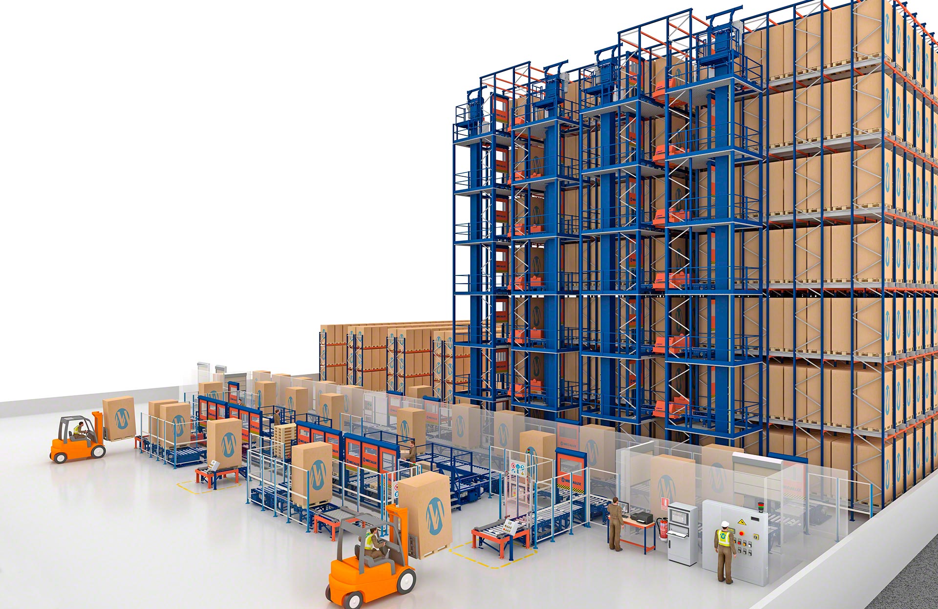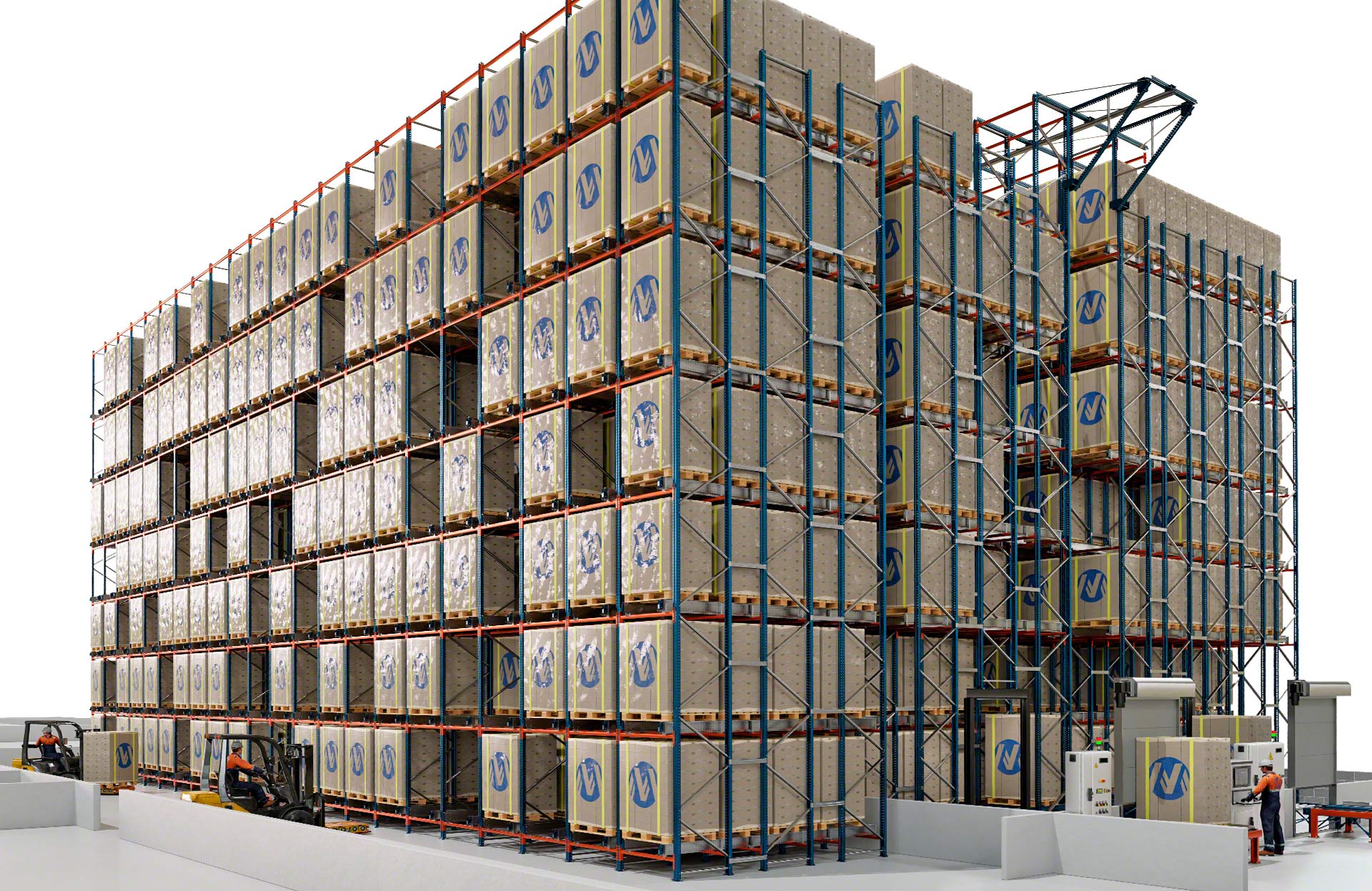 - Komplekss risinājums: Mecalux izstrādā, ražo, uzstāda un nodod ekspluatācijā visus sistēmas komponentus. Tie ietver palešu plauktu sistēmas, shuttle vagonetes, automātisku pārvietošanas aprīkoju (kraušanas celtņus vai pārvietošanas ratus), konveijerus un noliktavas kontroles un pārvaldības sistēmas (WCS un WMS).
