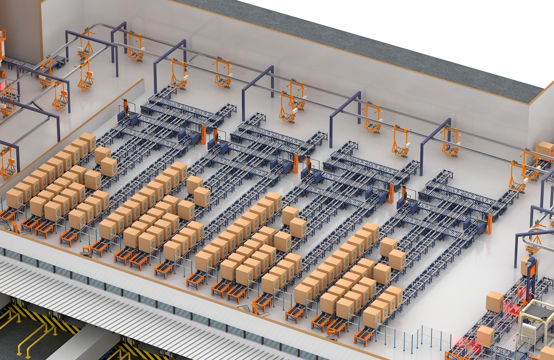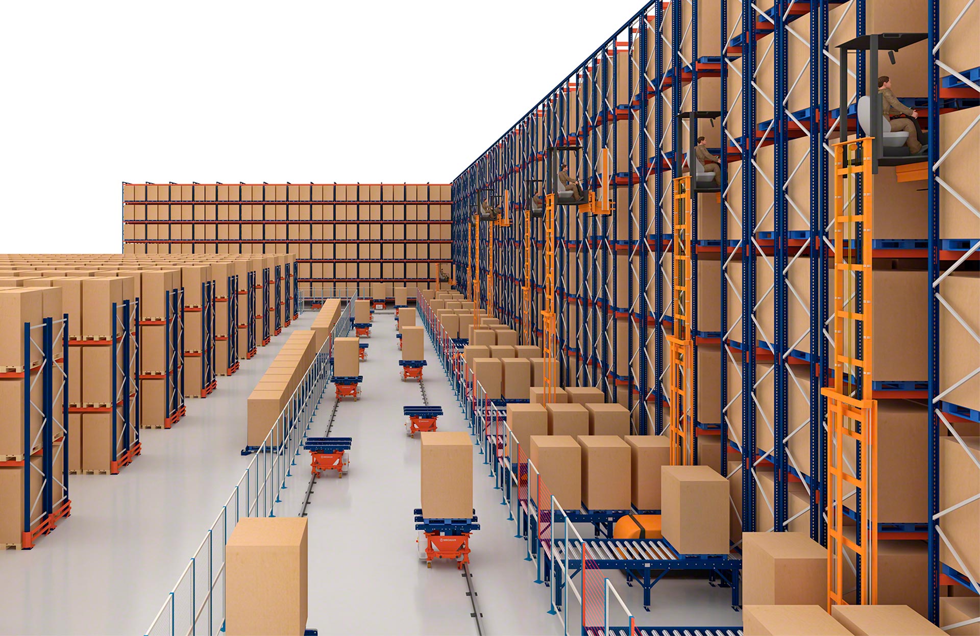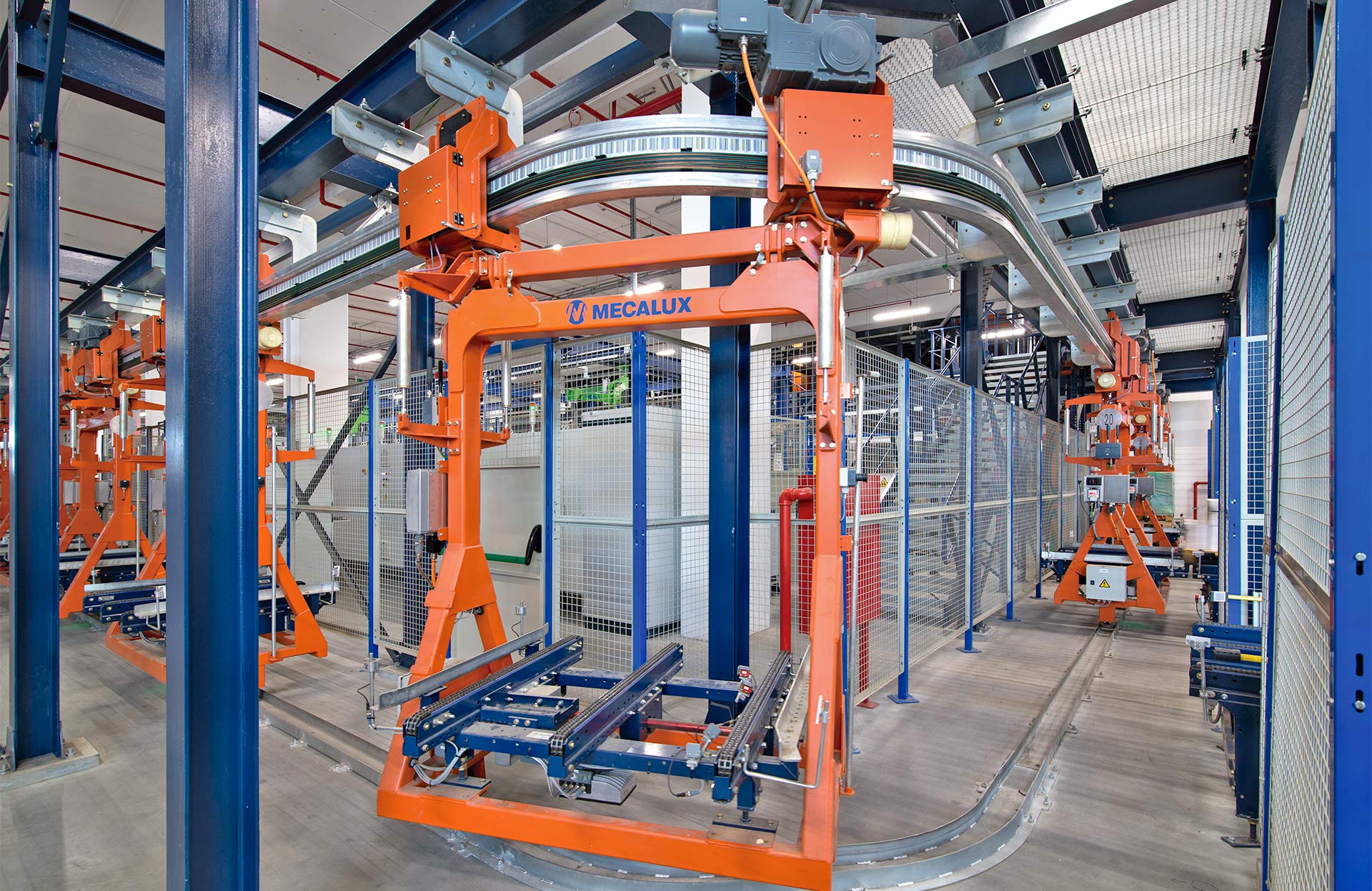 Transportieri, kurus vada programmatūra, regulējot satiksmi un izvēloties piemērotāko maršrutu, pārvieto paletes starp dažādiem iekraušanas un izkraušanas punktiem. Mecalux elektriskā monorail sistēma, pateicoties tās ātrumam, maksimāli palielina preču plūsmu visa veida noliktavās un ražošanas centros.