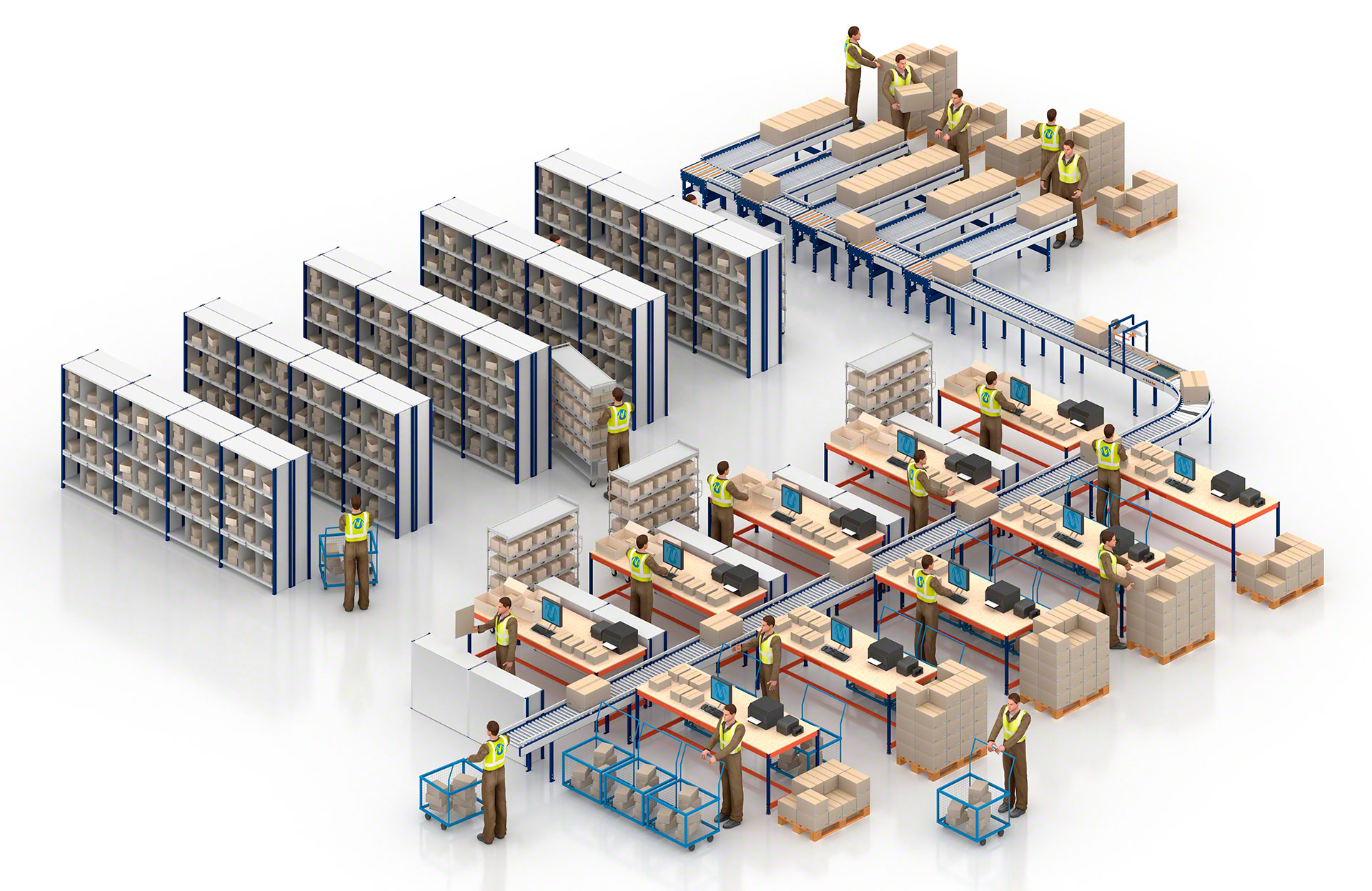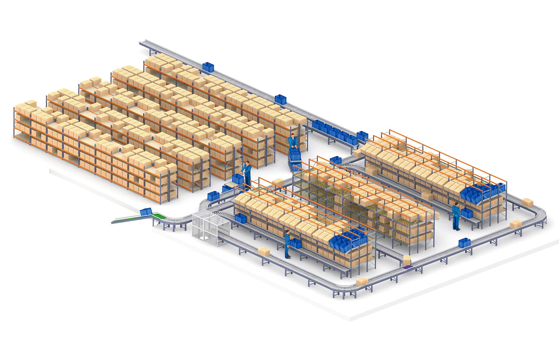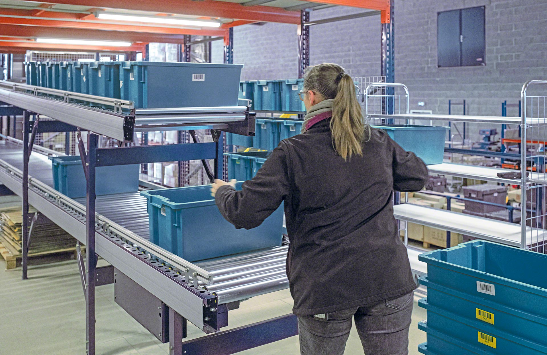 - Ergonomiska darbība: ar kastu pārvietošanas konveijeriem personālam ir ērtāk pildīt uzdevumus, piemēram, pasūtījumu komplektēšanu.