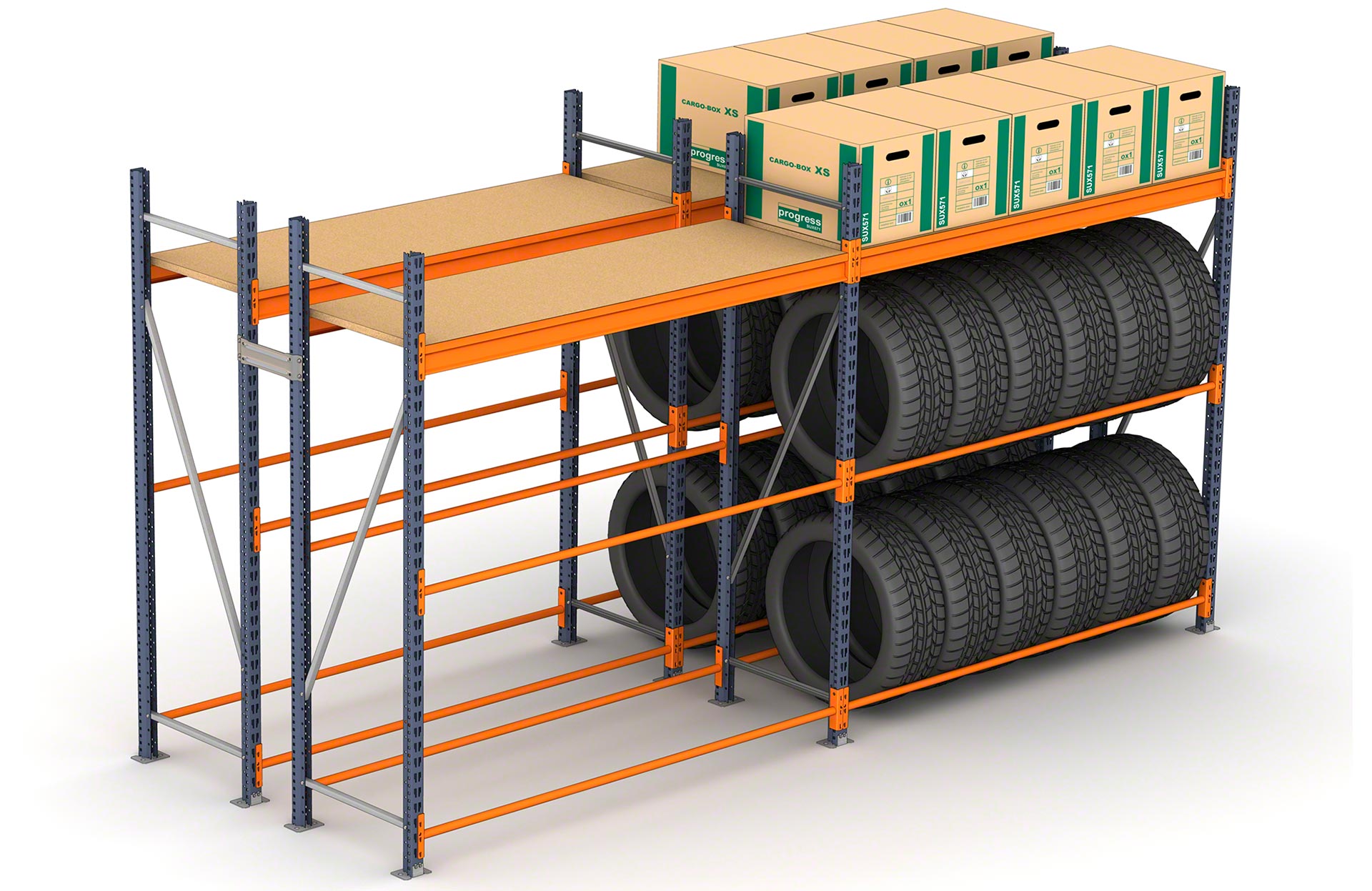 Jā, tas ir iespējams, pateicoties dažādām pieejamām konfigurācijām. Piemēram, modelis ar līmeņiem, ko veido tikai sijas, ir piemērots lielām cilindriskām precēm, tādām kā riepas un riteņu loki. Savukārt uzstādot plauktos vienkāršus vai dubultus uzkāršanas stieņus, ir iespējams uzglabāt apģērbus.