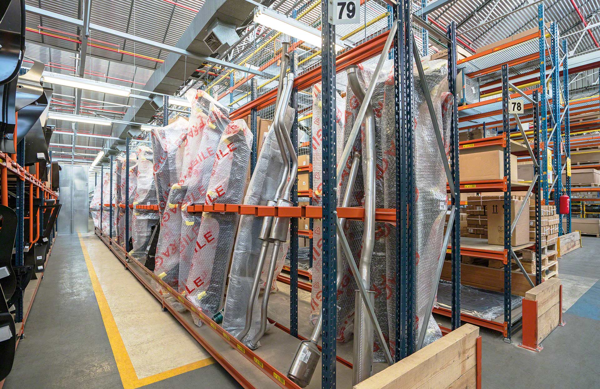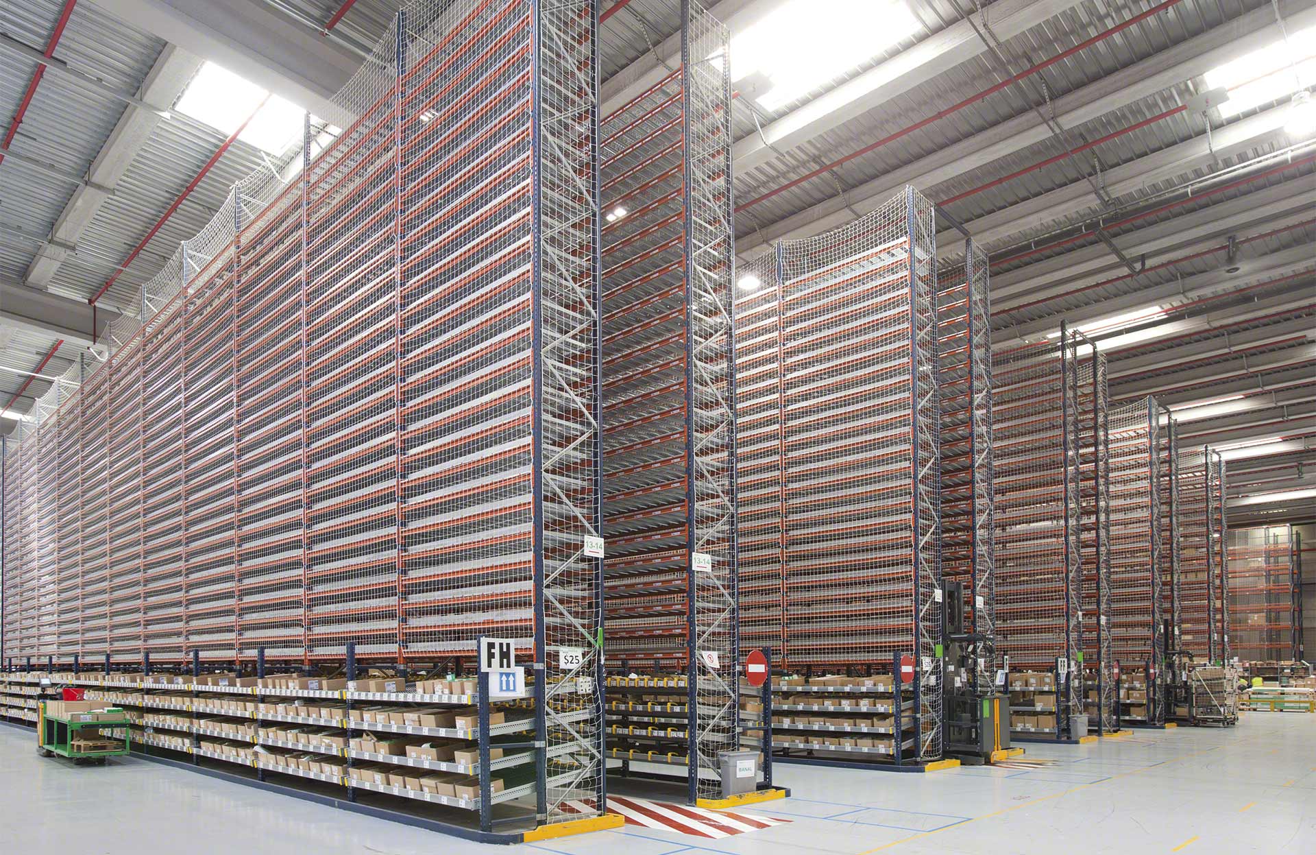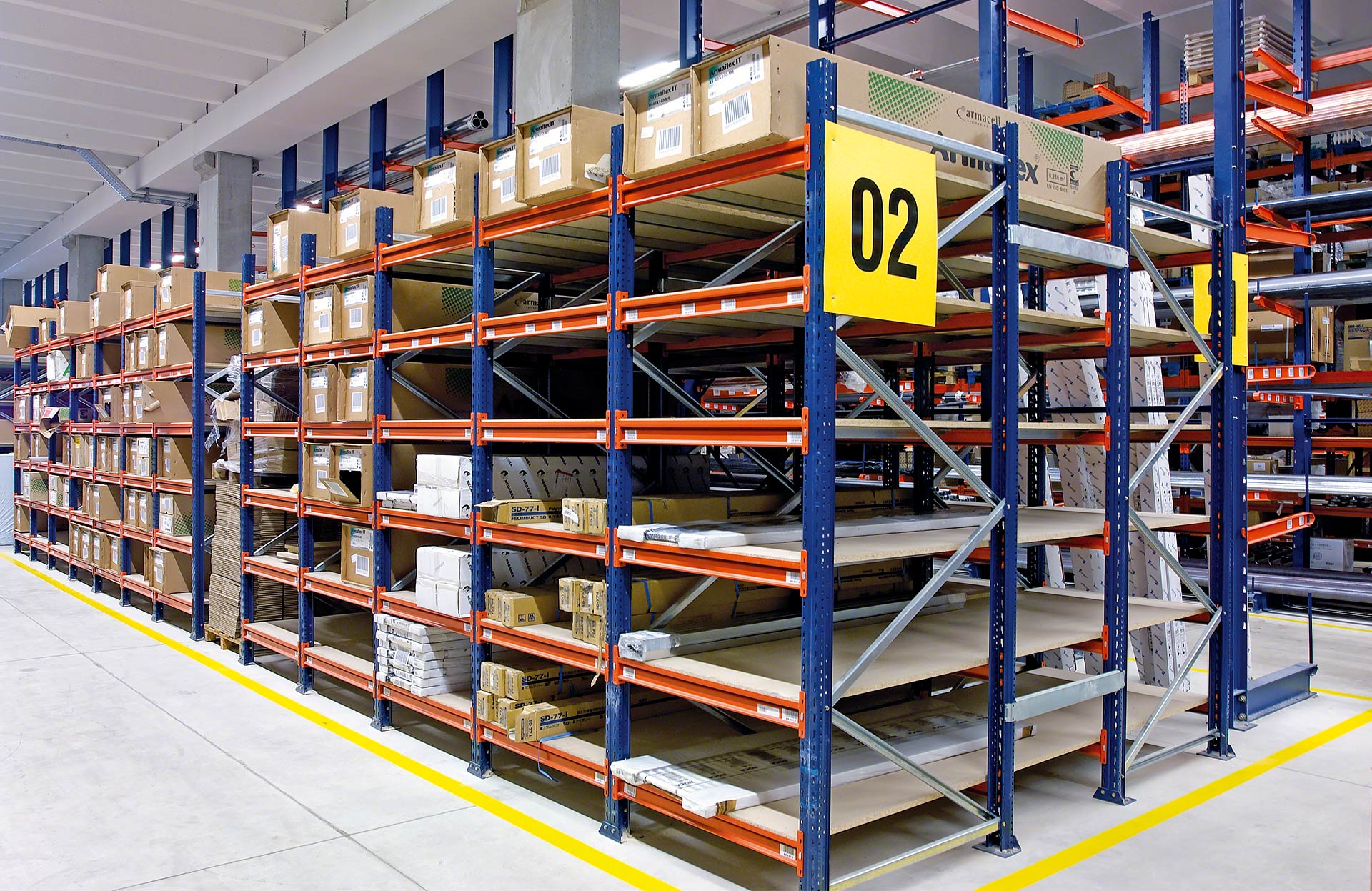 Mecalux M7M7 gara laiduma plaukti tiek plaši izmantoti komplektēšanas noliktavās, atbalstot svaru virs 1000 kg uz vienu līmeni.