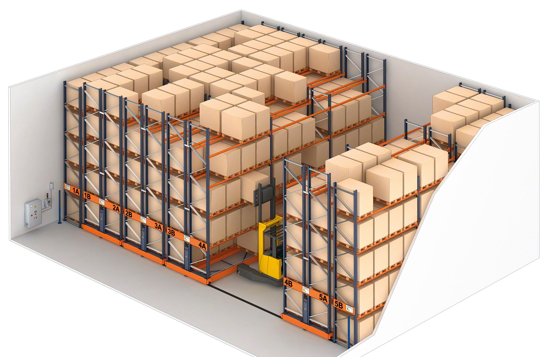 Mecalux Movirack mobilie uzglabāšanas plaukti optimizē uzglabāšanas sistēmas aizņemto tilpumu. Tas nozīmē, ka plauktu bloki pilnīgi kontrolējamā veidā tiek sabīdīti kopā vai atdalīti, atverot tikai konkrētajā brīdī nepieciešamās darba ejas.